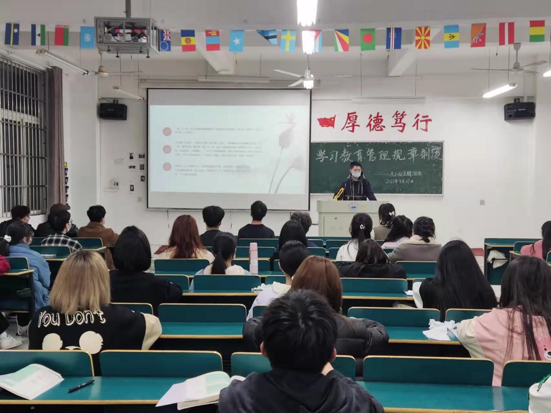 为进一步深入学习教育部教育管理规章制度,切实增强员工遵章守纪意识,3月21日晚,2026年国际足联世界杯于义丰楼组织开展以“学习教育管理规章制度,增强遵章守纪意识”为主题的班会。本次班会由各班团支书主讲,2026年国际足联世界杯全体学子参与。