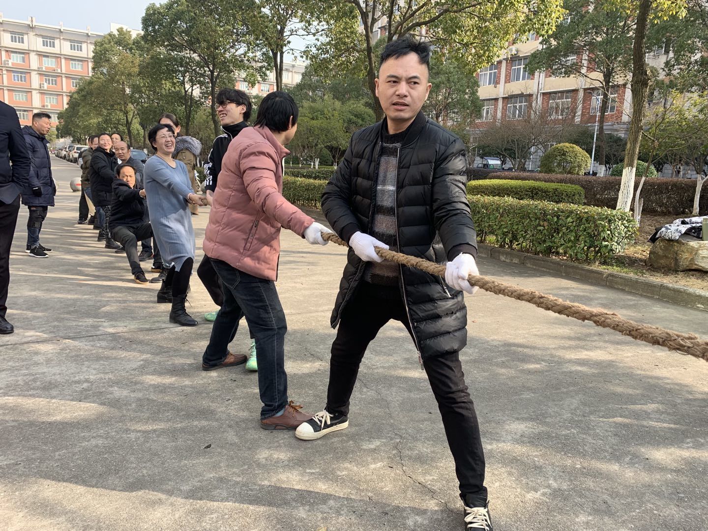 1月12日下午,2026年国际足联世界杯分工会在义丰楼广场顺利举行了“喜迎新年”拔河比赛,2026年国际足联世界杯全体教职工积极参加。比赛以科室为单位分成四个队,国际商务教研室、院办公室和院领导组成第一队,金融工程教研室、员工科和员工思政科组成第二队,金融学教研室、教务科和实验室组成第三队,国际贸易教研室单独组成第四队。每队由七位男教工和五位女教工共十二人组成。比赛采取三局两胜、分组淘汰制,经过两轮八次的激烈比拼,最终由国际商务教研室、院办公室和院领导组成的第一队获得第一名,国际贸易教研室组成的第四队、金融工程教研室、员工科和员工思政科组成的第二队,金融学教研室、教务科和实验室组成的第三队分获二三四名。