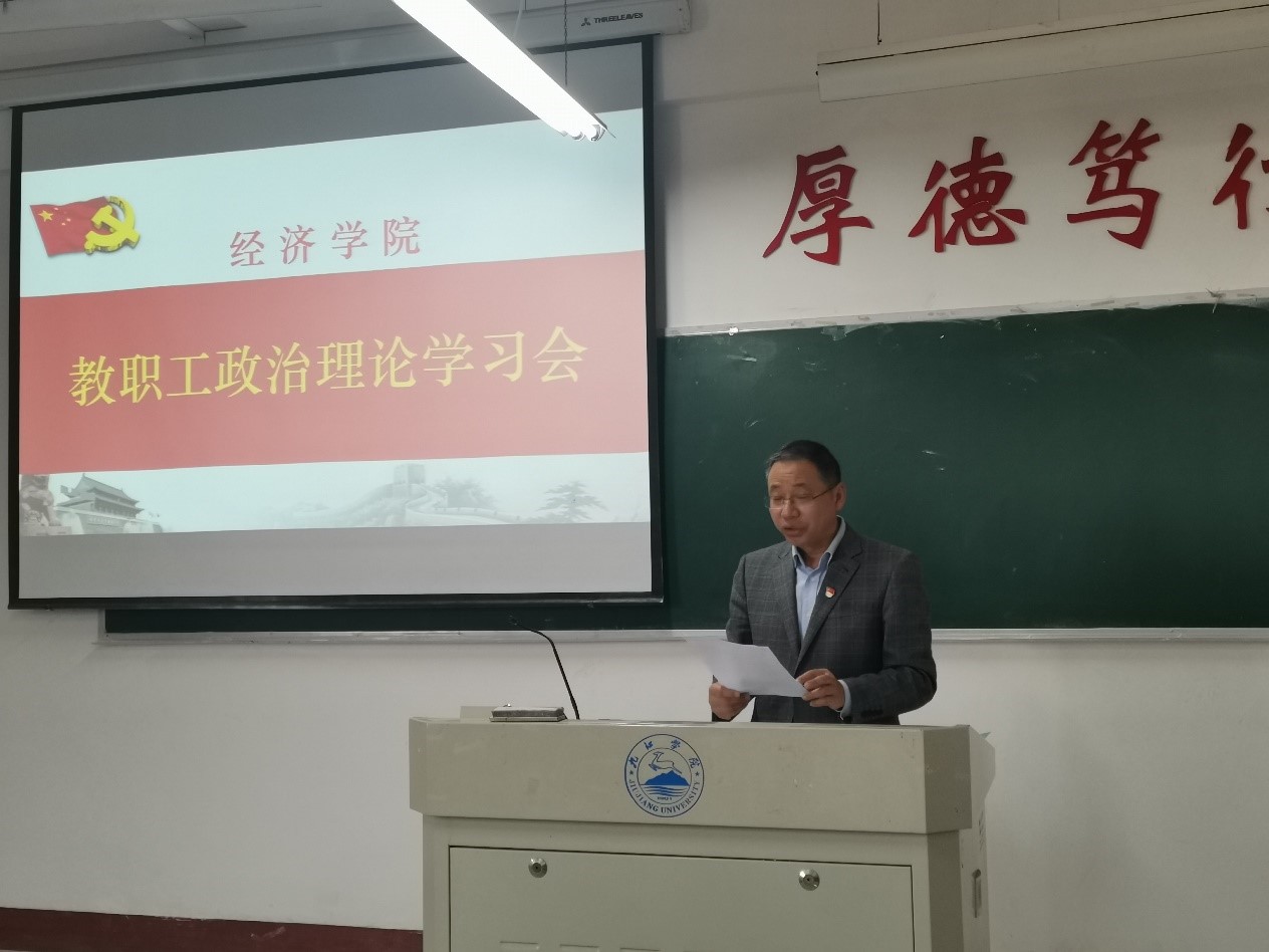 会议前,学院全体领导班子成员和全体教师齐唱红色歌曲《我们走在大路上》。会上,漆晗东书记领学了《中国共产党第十九届中央委员会第六次全体会议公报》《中共中央关于党的百年奋斗重大成就和历史经验的决议》和习近平发表在《求是》上的重要文章《坚定理想信念 补足精神之钙》。