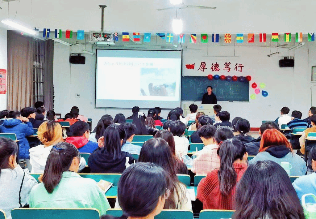 活动伊始,主讲人介绍了锻炼体魄的相关知识和意义,强调了体育锻炼的重要性。接着,结合PPT的内容,讲解了在不同时期的全民健身计划和体育赛事。且活动中有同学热情问答、积极发言,也有用方言读文字的有趣互动。最后,教官分享了当兵训练日常项目和感想,祝愿同学们不断增强对运动的热爱,投身体育事业,做好未来规划。