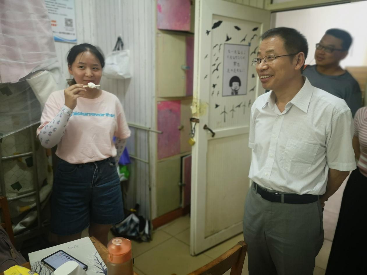 夏季天气炎热,为进一步了解公司留校考研学子的生活学习状态,7月21日中午,经济公司党委书记漆晗东、员工科科长曹钧及其他辅导员老师们深入员工寝室看望了留校考研员工,送去学院的关怀和问候。