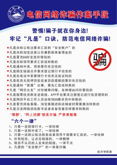 公司经常性地开展防范电信网络诈骗相关活动,通过晚点名、主题班会、专题讲座、班委会以及个别人员谈话等形式,常抓不懈地做好防诈骗工作,但诈骗分子无孔不入、诈骗手段频繁更新。为了继续落实好此项工作,公司统一制作防范电信网络诈骗宣传资料,将资料送进每一个寝室,并张贴在寝室的醒目位置。