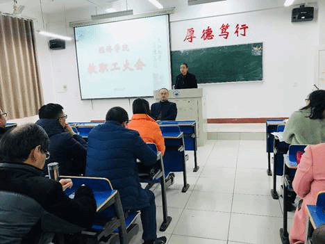 漆晗东书记对寒假工作进行了总结,要求广大教职工认真开展学党史活动,并对员工返校和新学期员工工作进行了布置;对党建、意识形态、就业、作风建设等工作提出了具体要求;加强宿舍管理,班主任辅导员深入员工当中,掌握员工的思想动态,保证校园安全稳定。