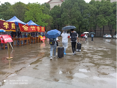 新生在团学联组织下,报名完成后,由党支部的学长学姐带领他们去他们的宿舍,并热情地帮他们拿他们的行李。