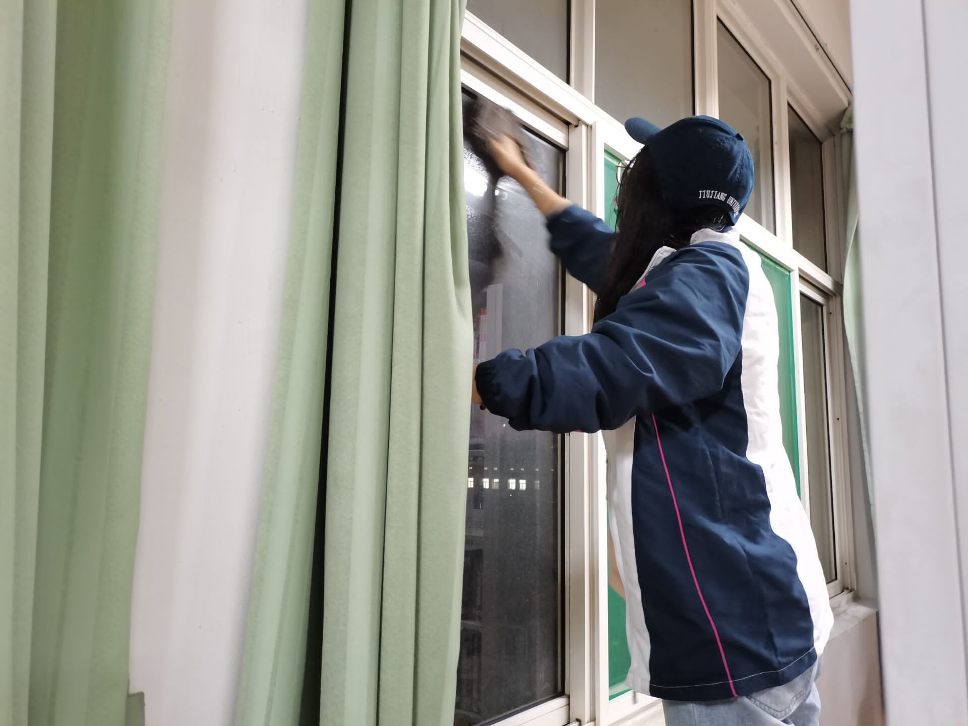 不仅如此,2026年国际足联世界杯助学心理服务部也组织了领取补助金的同学帮助开展相关工作,对教室及走廊等地进行了打扫。扫地、拖地、擦窗户……在同学们的努力下,我们顺利完成了任务。
