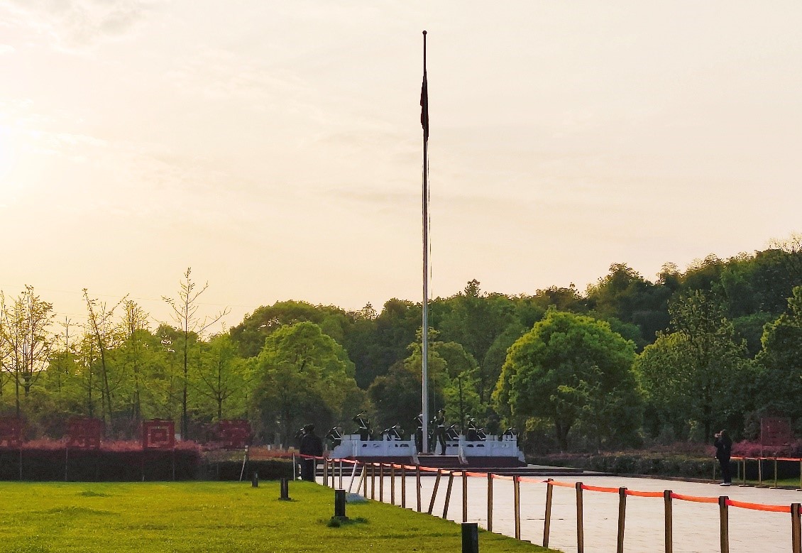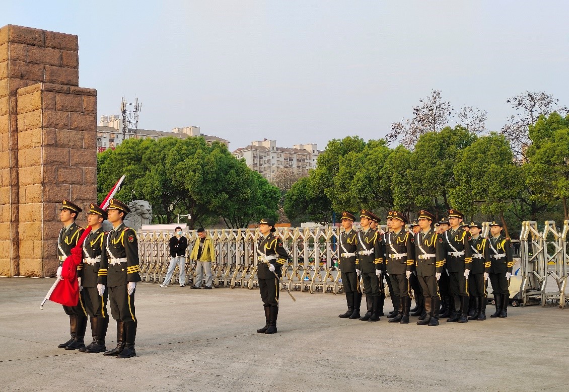 晨光熹微,全体员工准时来到西门广场前列队集合,昂首挺胸,肃穆而立,静待庄严时刻的到来。上午6时30分,随着军靴声、口号声由远及近,英姿挺拔的国旗护卫队护卫着鲜艳的五星红旗,迈着整齐划一、铿锵有力的步伐入场,升旗仪式正式开始。彤彤旭日,熠熠朝霞,伴随着雄壮激昂的《义勇军进行曲》,五星红旗冉冉升起,随风飘扬,全体员工高唱国歌,行注目礼。