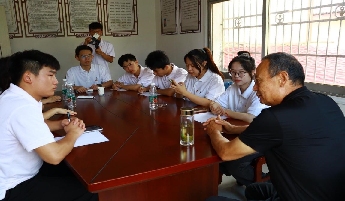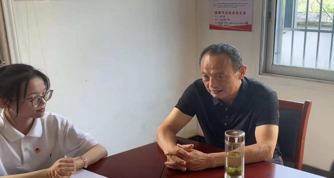 首先,队员们进入光明村对老党员殷书记进行采访和慰问。在采访过程中,顾喜同学询问了关于殷书记入党的初心和工作历程。了解到殷书记青年时就坚定加入党组织的信念,并于28岁时加入中国共产党。在光明村任职期间,一直把为党为国家奉献付出作为自己的原则。