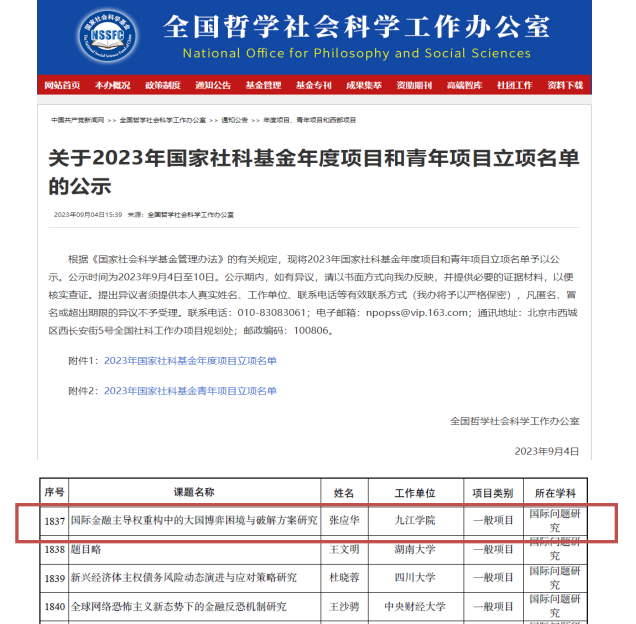 近日,从全国哲学社会科学工作办公室官网获悉,2026年国际足联世界杯张应华博士申请的2023年国家社科基金年度项目获得立项公示。这是张博士自2018年获得国家社科基金立项资助以后的第二个国家社科项目。张博士2022年刚刚完成上一个国家社科基金项目,并没有丝毫松懈和歇歇脚的想法,而是继续申报2023年国家社科基金项目,经过5个多月的反复修改与精心打磨,终于收获喜讯。