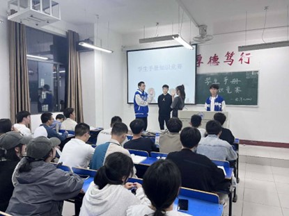此次活动包括员工手册大学习和员工手册竞赛两项内容。员工手册大学习中,班长讲述了关于学校学院的规章制度,强调了校内安全和校外安全注意事项,提醒同学们践行员工手册内容的重要性。员工手册竞赛中,同学们充分展现了自己对手册的知识储备和对校纪校规的了解,积极热情的参与竞赛回答。用现场对答的形式提高了同学们对本次活动的热情,加深了同学们对校纪校规的理解,做到内化于心,外化于行。