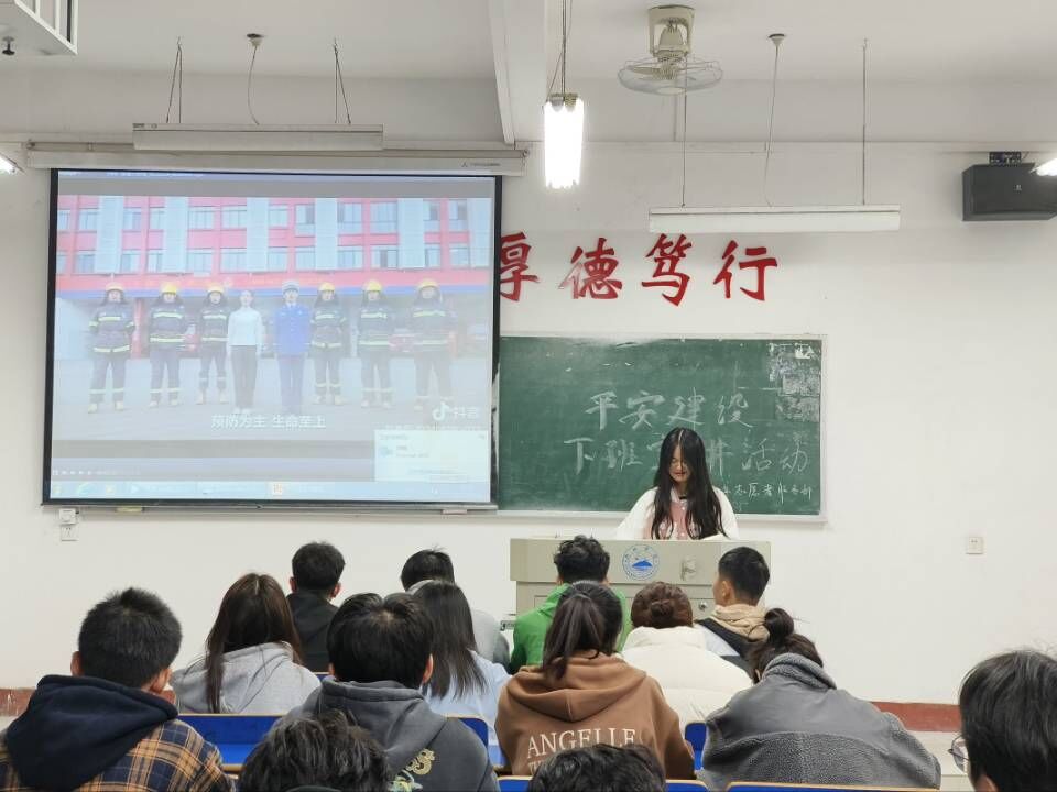 消防意识,必不可少。本次活动中,青年志愿者们事先分好八组,有序前往所分配的班级,将事先通过网上查阅的方式寻找相关消防视频所制作成ppt向同学们进行消防安全意识的宣传。志愿者们通过有趣的消防安全视频,绘声绘色地向同学们展示火灾的破坏性以及防火灾懂消防的重要性,其次,通过与台下同学的互动,同学们的积极回答有力地将此次活动推向高潮,志愿者们特意强调宿舍用电安全,通过展示错误宿舍用电图片,例如:排插上连着不同电器的插头,排插放在床上,使用大功率电器,重点指出了大多宿舍容易犯的用电问题,同时将常见的宿舍用电隐患指出,无疑对员工用电安全提供了有力保障,同时,在同学们就消防灭火,逃生方式的激烈探讨声中,无疑是对同学们进一步加深消防安全意识,强化防火灾心理的莫大帮助。