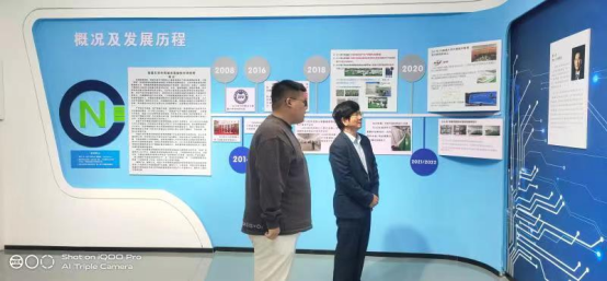 南昌大学共青城光氢储技术研究院张皓然主任,向王董事长介绍了推广光氢储技术发展绿色能源的意义,邀请王董事长参观了研究院新能源技术展厅和光氢储智能互补示范电站,双方就“双碳”目标与新能源产业、产教融合发展、服务地方、员工就业等问题进行友好交流。