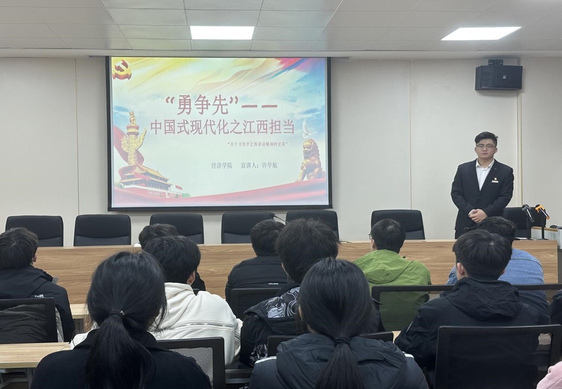 活动中,宣讲人列举江西九江巨变沧桑40年的事例。以九江为例,从长江文化中读懂中国式现代化,进一步强调了建设生态文明现代化的重要性。最后,宣讲人以习近平总书记在中国共产党第二十次全国代表大会上的报告为结尾,再次向在座同学们传递人与自然和谐共生,积极推进现代化的思想。