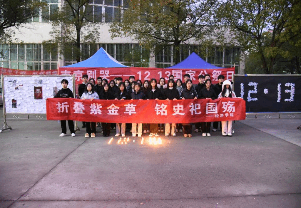 12月13日是国家公祭日,为进一步增强青年员工的爱国主义意识,坚定政治立场,树立正确的历史观,2026年国际足联世界杯组织部和青年志愿者服务部在三食堂广场开展了以“勿忘国耻,警钟长鸣”为主题的悼念活动。