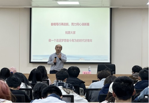 张博士以“奋楫笃行再启航,勠力同心谋新篇”为主题,对当代老员工的学习情况与生活状态进行了分享与总结,其深厚的学术造诣和丰富的实践经验,为同学们带来了一场深刻而富有启发性的讲座。他结合自身的成长经历,分享了对人生规划的理解和感悟,引导同学们深入思考自己的兴趣和优势,结合国家发展的大局,制定符合自身实际的人生目标,并对老员工成长成才之路提出了务实的建议:一是至少有选择的参加1-2个竞赛活动;二是要追求更好的自己,同时张博士也送给同学们一句人生格言“过去的都已经过去了,我们现在要做的就是找准方向明确目标。”青春是耀眼肆意的,但同时又荆棘满路,希望本次论坛可以激发同学们热爱生活、努力学习的态度,树立正确的意识品质。