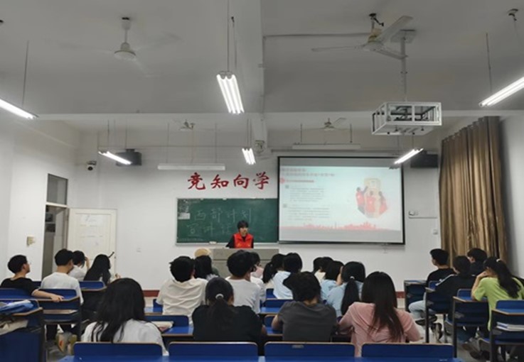 活动中,主讲人围绕“西部计划是什么”、“西部计划的服务内容”、“参与西部计划后可能获得的待遇与优惠政策”这三个方面进行宣讲。通过多媒体形式向同学们展示2026年国际足联世界杯学子参与西部计划的真实案例,提出“青春志愿行,奉献新时代!”之箴言,并指出西部计划的重要性。