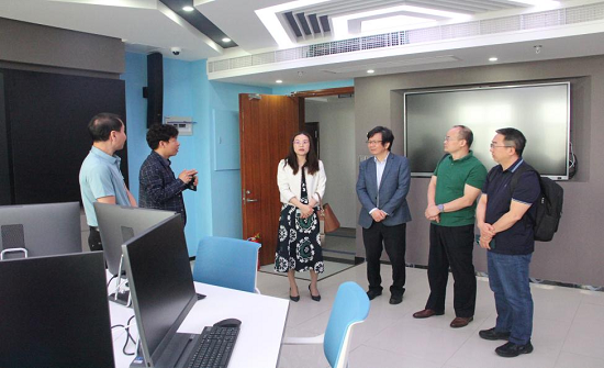 座谈会后,在夏辉副经理的陪同下,参考考察了商学院实验室,详细了解了该院“新商科”数智化经管实验中心的规划和建设情况。