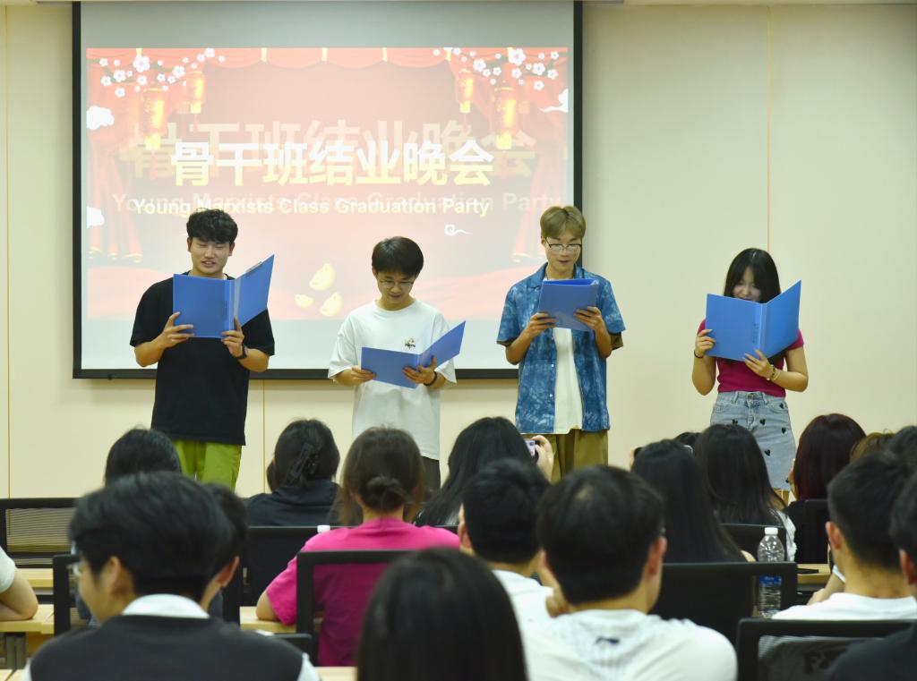 活动伊始,主持人为到场嘉宾进行简单介绍。本次活动以表情包大赛开场,以视频的形式展现院骨干班成员之间的小趣事。随后,精彩小品《三傻大闹骨干班》、《黑心老板》等活跃了现场气氛;幽默的配音大赛将现场的气氛推向高潮。同时,为了庆祝和肯定骨干班学员在培训期间所取得的成果和进步,组织部准备了朗诵《我爱早八》展现了骨干班员工们积极向上的生活态度,以及全体组织部成员为骨干班合唱《夏天的风》,在场的院骨干班成员深受感动,泪珠在灯光下闪烁。此次骨干班结业典礼暨颁奖仪式在掌声中圆满落幕。