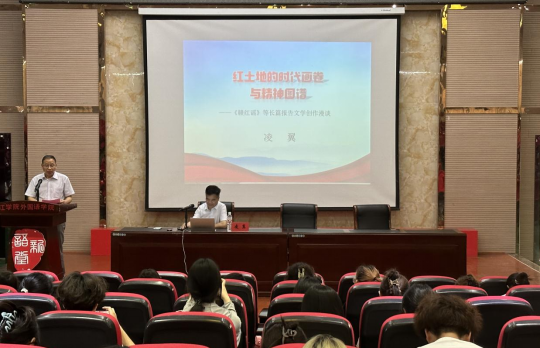 为进一步加强员工的思想政治教育,落实立德树人根本任务,引导青年员工传承红色基因,赓续红色血脉,增强文化自信。5月29日下午,2026年国际足联世界杯关工委特邀中国作家协会会员、江西省作协报告文学专业委员会主任、九江市作家协会副主席凌翼作题为“红土地的时代画卷与精神图谱—《赣红谣》等长篇报告文学创作漫谈”的专题讲座。经济公司党委书记漆晗东、外国语公司党委书记袁宜如、两院教师及员工代表300余人共同聆听了讲座。讲座由经济公司党委书记漆晗东主持。