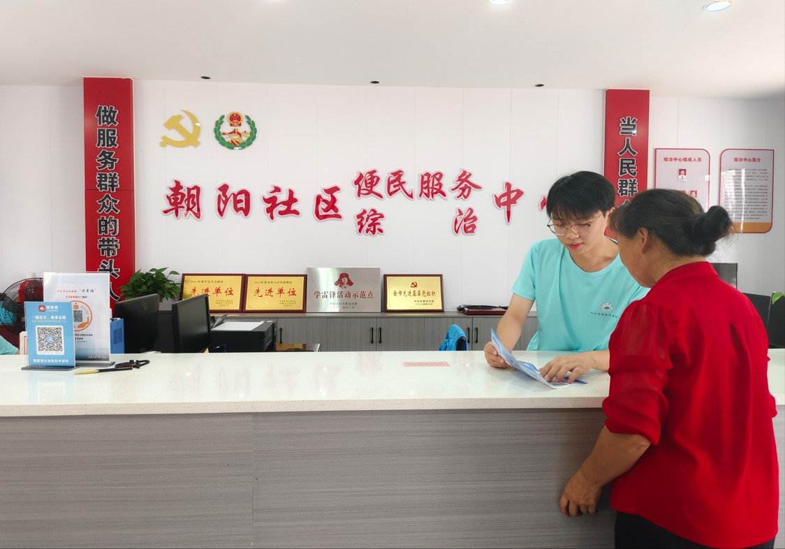 最后一天,社会实践服务队来到泽泉乡朝阳社区便民服务站,在这里开始了主题为“实践下乡送温暖,便民服务暖人心”的志愿服务活动。由于正值汛期,便民服务站人手不足,实践队员在学习后立马上岗,利用专业知识,结合自身优势,为村民提供简单的咨询服务、登记服务。便民服务活动不仅是老员工的一次社会实践,更是他们与社会、与人民群众心灵的一次深刻沟通与交流。队员们秉承着“奉献、友爱、互助、进步”的志愿服务精神,为社区贡献自己的力量,用行动践行社会主义核心价值观。