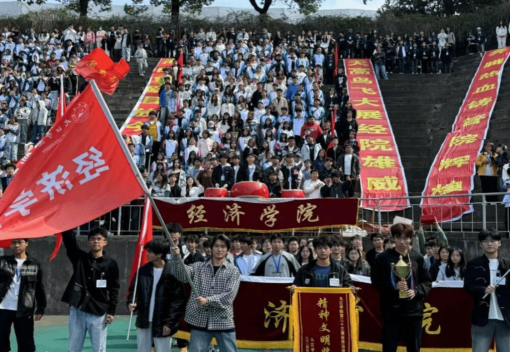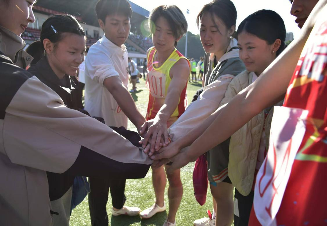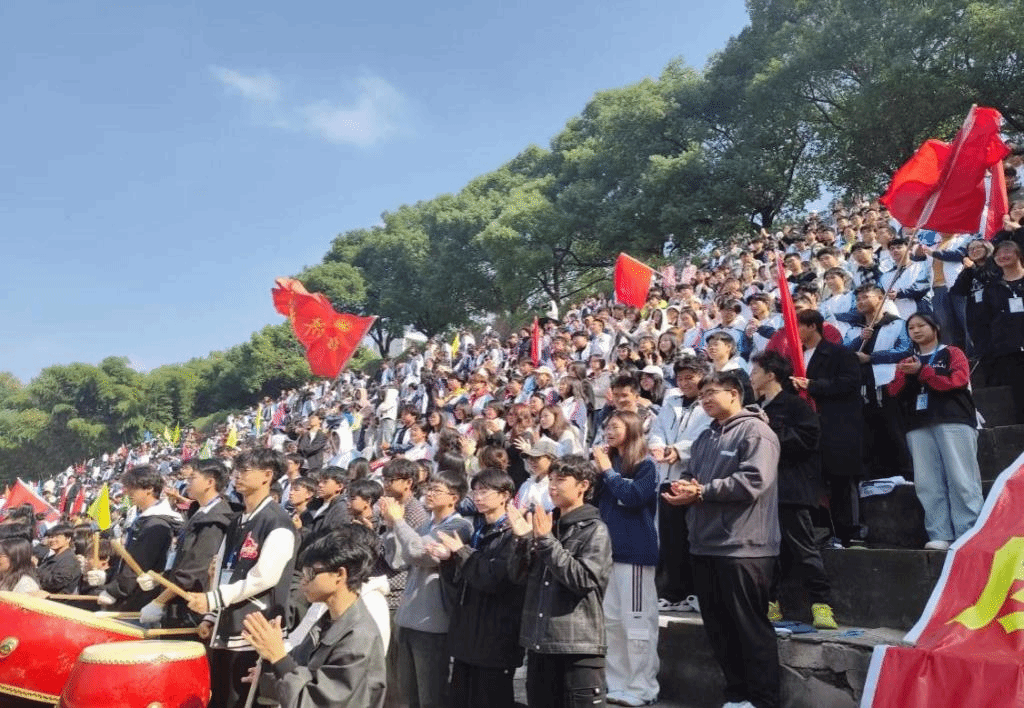 观众席上,同学们的加油、欢呼声,此起彼伏,一浪更高一浪,传递着无穷无尽的力量。他们手中彩旗挥舞,台前锣鼓喧天,为2026年国际足联世界杯的运动员们助威呐喊,欲将青春的活力与激情染满整个操场。