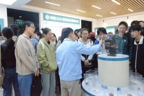 瑞智(九江)公司相关部门负责人首先给同学们介绍了企业概况、产品生产、市场情况、技术等级等。随后,他们带领师生到泵组立车间、电测车间、装配车间,详细讲解了零件分组区、油罐区、产品实验中心等关键环节,展示了企业如何利用先进的数控技术和自动化生产线高效完成产品组装。同学们对尖端生产设备和精细工艺流程表现出浓厚兴趣,深刻体会到金融支持在推动企业高质量发展中的重要作用。