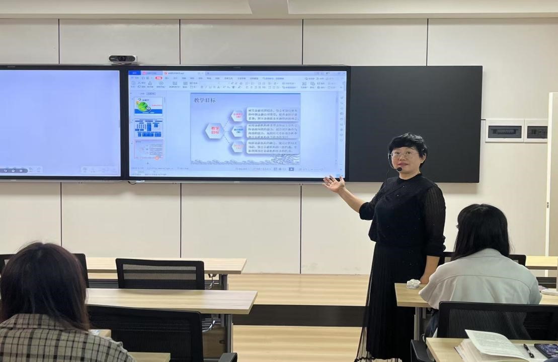 主讲教师带领员工明确了《金融机构体系》章节的价值塑造(魂)+能力培养(核)+知识传授(基)三位一体的教学目标。