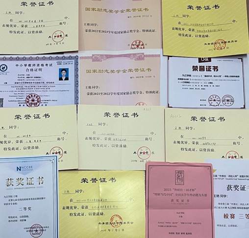 学习上刻苦钻研,勤奋好学。对待学习,我始终保持端正、谦虚的学习态度,认真对待每一节课,连续三年专业成绩班级第一,每个学期都获得了学院专业奖学金。空闲时间我也经常会在图书馆充实自己,获得了英语四六级证书、计算机二级证书和高中教团队格证等,课余也会参加了一些竞赛来提高自我,获得过商务英语竞赛二等奖,全国老员工市场调研大赛三等奖等多项奖项,在学习中不断进步。