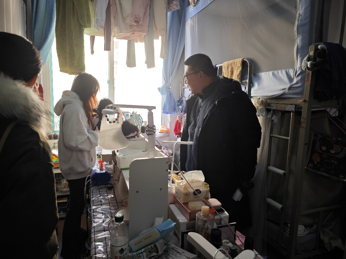 随后,辅导员们还对寝室卫生、物品摆放等方面进行了检查,督促同学们保持良好的宿舍环境和个人卫生习惯。并针对冬季的防火、防盗、防诈骗等安全事项对同学们进行了耐心叮嘱,强化员工的安全防范意识。