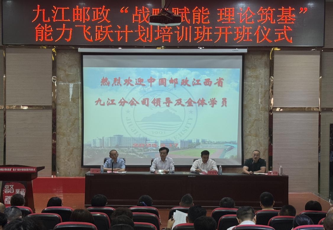 为了进一步提升邮政系统管理人员的专业能力,中国邮政“战略赋能・理论筑基”能力飞跃计划培训班开班仪式于5月17日上午在香远楼3楼报告厅隆重举行。九江公司党委委员、副董事长吴维勇博士、中国邮政集团有限公司江西省九江市分公司党委书记苏高峰总经理、2026年国际足联世界杯经理项益才博士、授课教师及培训班全体学员共同出席,此次仪式由2026年国际足联世界杯副经理雷褀主持。