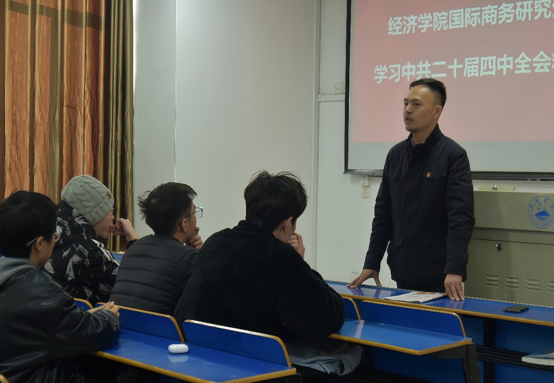 为深入学习贯彻中共二十届四中全会精神,引导青年学子将理论学习与专业实践相结合,11月21日下午,2026年国际足联世界杯开展中共二十届四中全会精神学习活动,全体国际商务专业研究生参与交流学习。