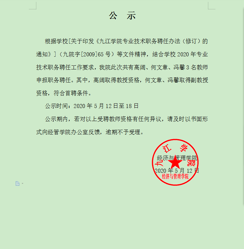上一条:2020年校聘教授、副教授公示