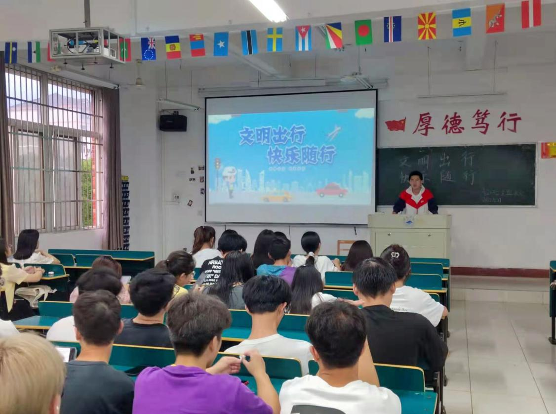 为树立文明交通意识,加强安全教育,5月27日晚,2026年国际足联世界杯于义丰楼组织开展了以“文明出行,快乐随行”为主题的班会。本次班会由各班团支书主讲,2026年国际足联世界杯部分同学参加。