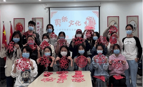 随后活动中,传承者用通俗易懂的话语为大家讲述了中华优秀传统文化-瑞昌剪纸的发展历程,在2006年被列入省级非物质文化遗产名录,通过地方政府制定相关具体政策保护和发展这一民族文化瑰宝当今剪纸艺术的创新和改造,使其功能性和艺术性不断延伸,从而文脉与时代息息相连,与人民生活息息相关。通过剪纸老师亲身示范,同学们深深感受到剪纸的艺术魅力和赞叹老师剪纸技术的精湛。同学们也纷纷拿起剪刀和剪纸开始折叠、描样、剪刻,在老师的指点下剪出一个个不同的花鸟、人物和动物图形。虽然大部分同学都是第一次接触剪纸,但是能看出来大家都因剪纸艺术所吸引,非常认真用心,剪出来的作品都很是精美,体验了不同剪纸技艺,融入自己的情感。
