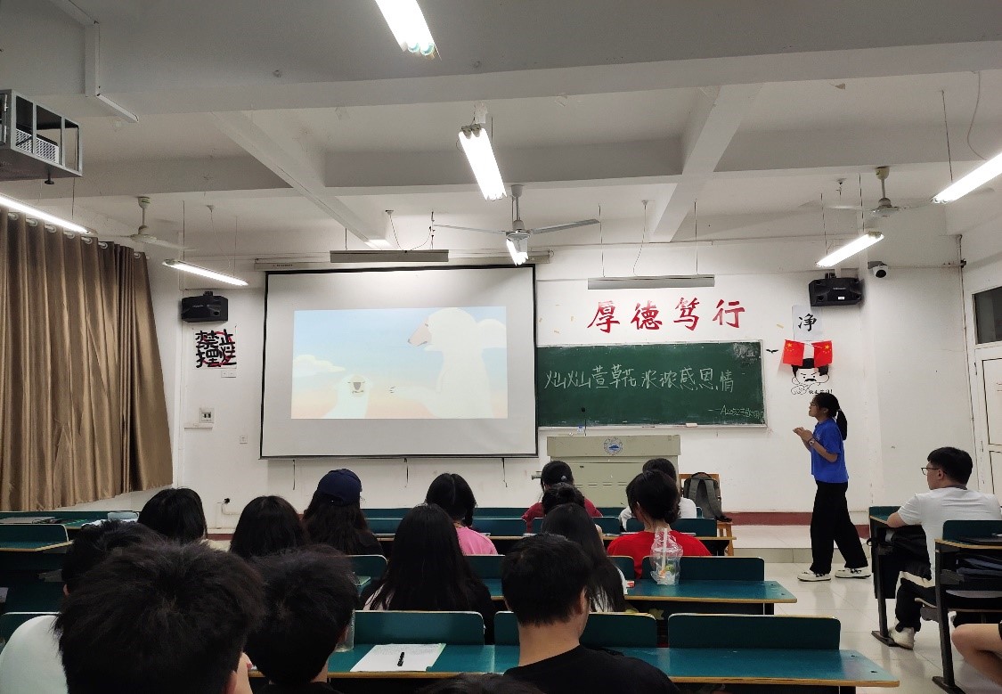 活动中,主持人向同学们介绍了母亲节的由来与意义,并通过朗诵《游子吟》等赞美母爱的诗歌,加强了同学们对母亲节的认识,让同学们从传统诗词中感悟母爱的伟大。活动的最后,主持人组织同学们围绕母亲节应怎样感恩母亲这一话题交流讨论,号召同学们用实际行动去赞扬母爱、歌颂母爱,更要懂得感恩母亲。