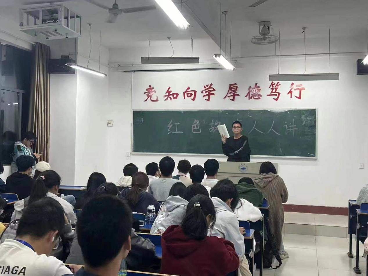 红色故事,染尽英雄血,峥嵘岁月抒豪情。组织部干事接着以“红色故事人人讲”引出活动内容,同学手捧书慷慨激昂的讲诵红色故事,让本次活动的氛围达到了高潮。