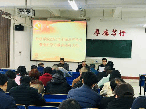 会议明确了2021年学院全面从严治党工作的总体要求,坚持党的领导,坚定政治方向,以党的政治建设为统领,以党史学习教育、师德师风建设和基层组织建设为抓手,全面推进党的各项建设。漆书记与项经理分别作了重要讲话,明确了党史学习教育的重要意义、目标任务、部署了学院学习党史教育安排和要求。